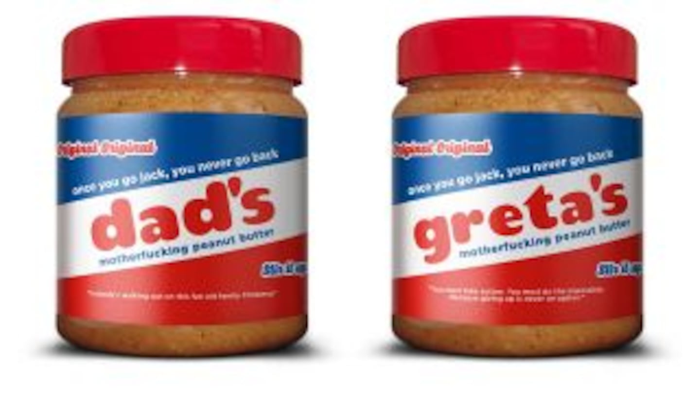 The actual name of the peanut butter is something that is definitely not safe for work, but for a little extra you can customize the label with anything you want.