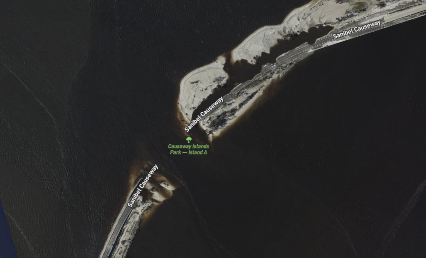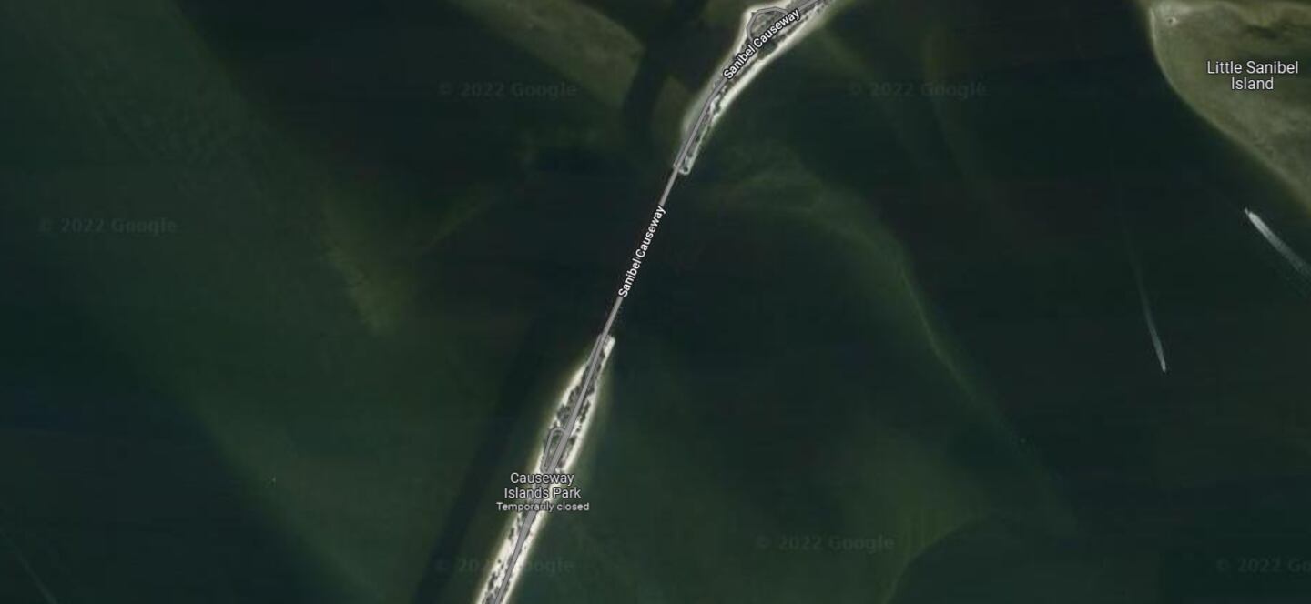 You can see just a small difference between the still available Google Map image of the Sanibel Causeway here: