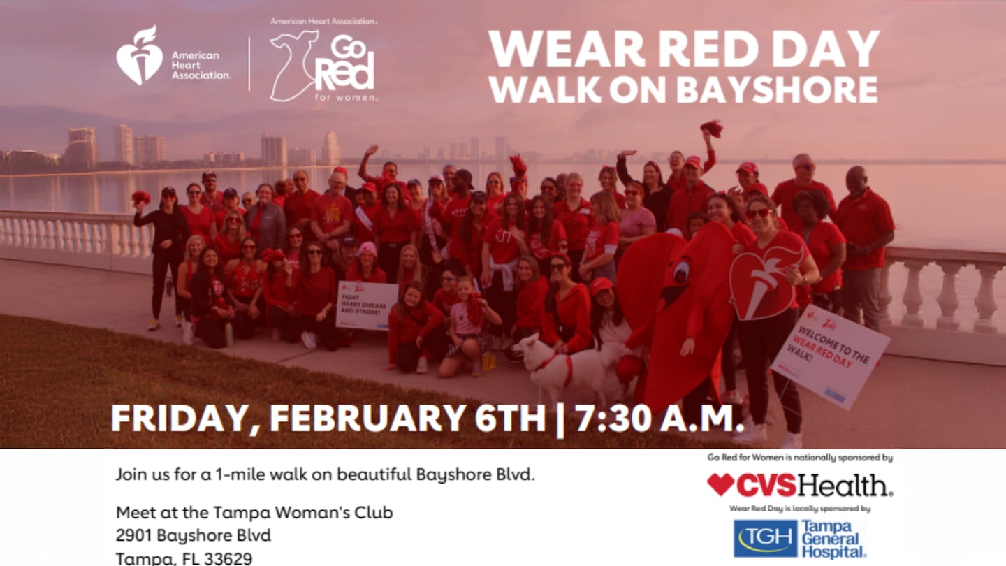 Join us for a 1-mile walk on beautiful Bayshore Blvd. Meet at the Tampa Woman’s Club 2901 Bayshore Blvd Tampa, FL 33629