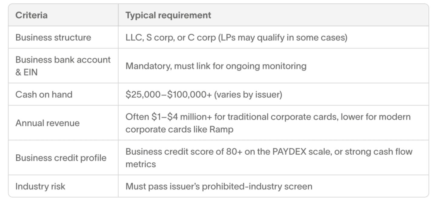 Getting a business credit card without a personal guarantee isn’t as simple as filling out an application online. Because issuers shift the risk from you personally to your company, they dig deeper into your business metrics. To get a business credit card with no personal guarantee, you generally need to meet four broad criteria: