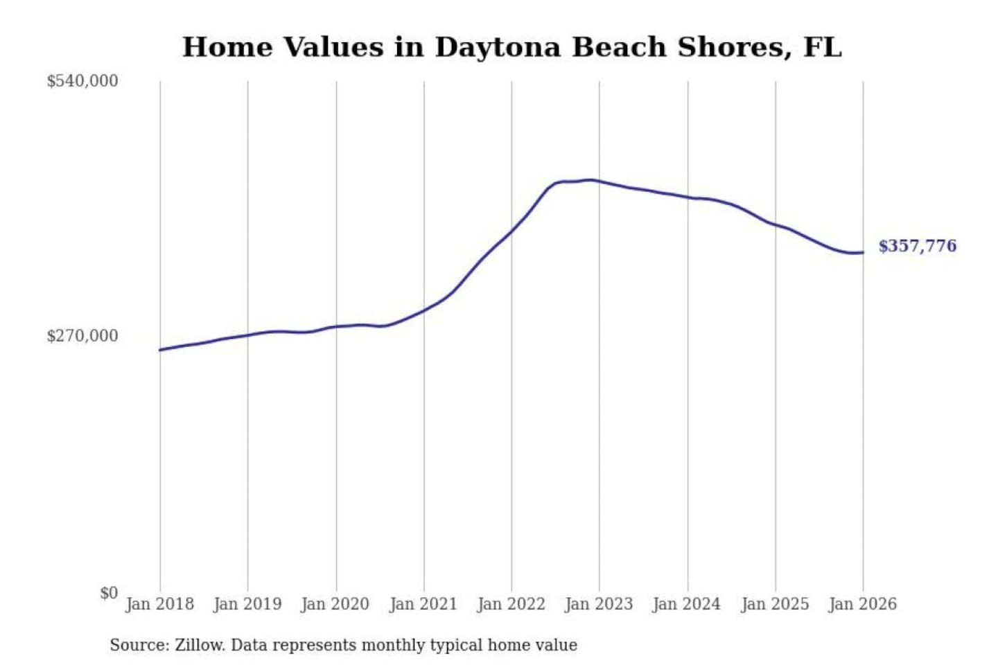 Stacker compiled a list of cities with the fastest growing home prices in the Deltona-Daytona Beach-Ormond Beach, FL metro using data from Zillow. (4 PM production // Shutterstock/4 PM production // Shutterstock)