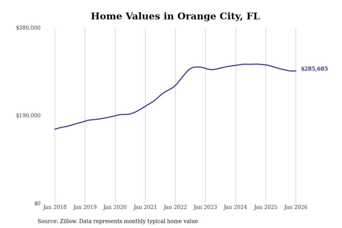 Stacker compiled a list of cities with the most expensive homes in the Deltona-Daytona Beach-Ormond Beach, FL metro area using data from Zillow. Charts show the monthly typical home value since January 2018.