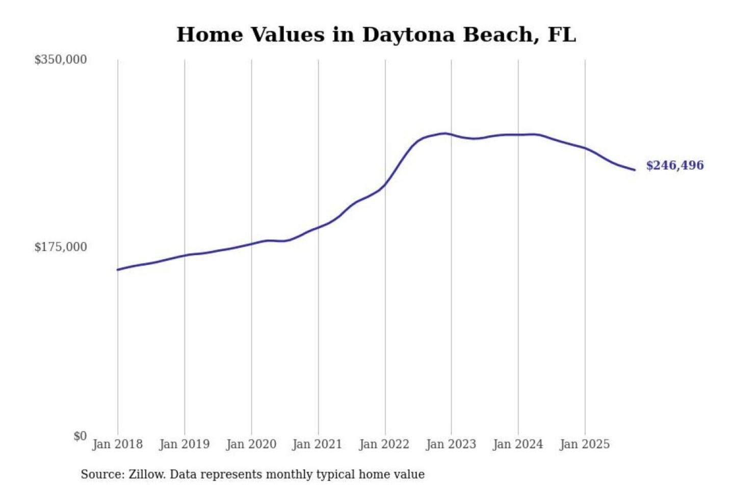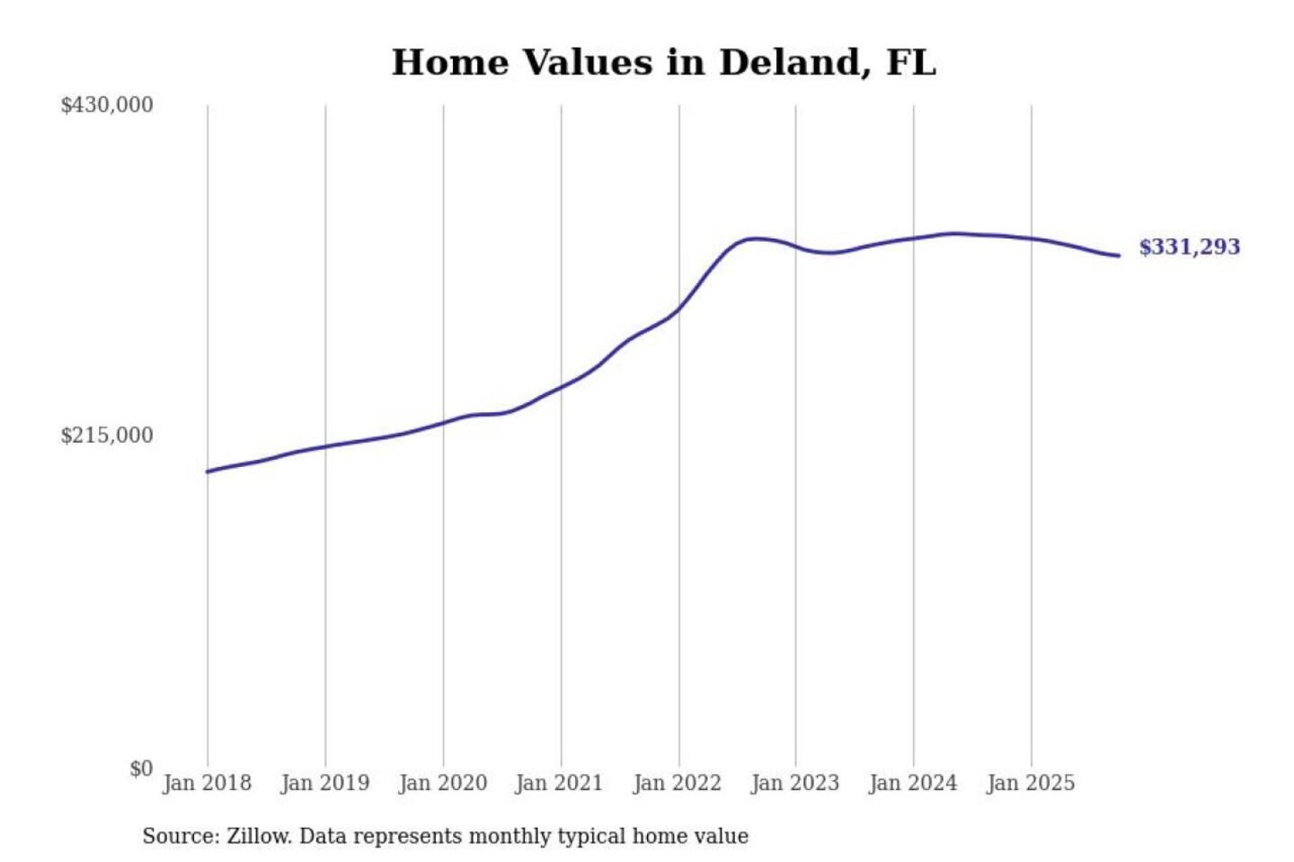 Stacker compiled a list of cities with the most expensive homes in the Deltona metro area using data from Zillow. Charts show the monthly typical home value since January 2018. All 22 cities and towns with data available were included in the list.