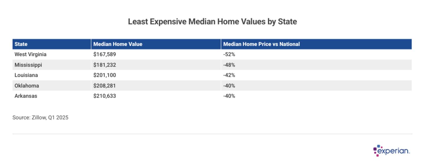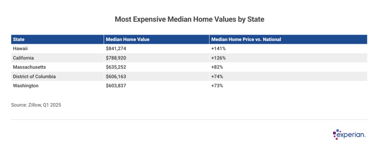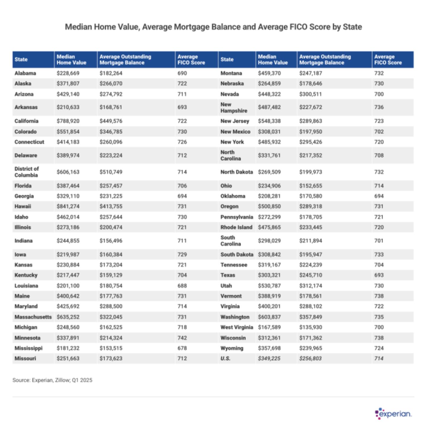 In this report, Experian compared the current median home prices as measured by online real estate marketplace Zillow to average mortgage balances as recorded by Experian as of the end of the first quarter (Q1) of 2025.