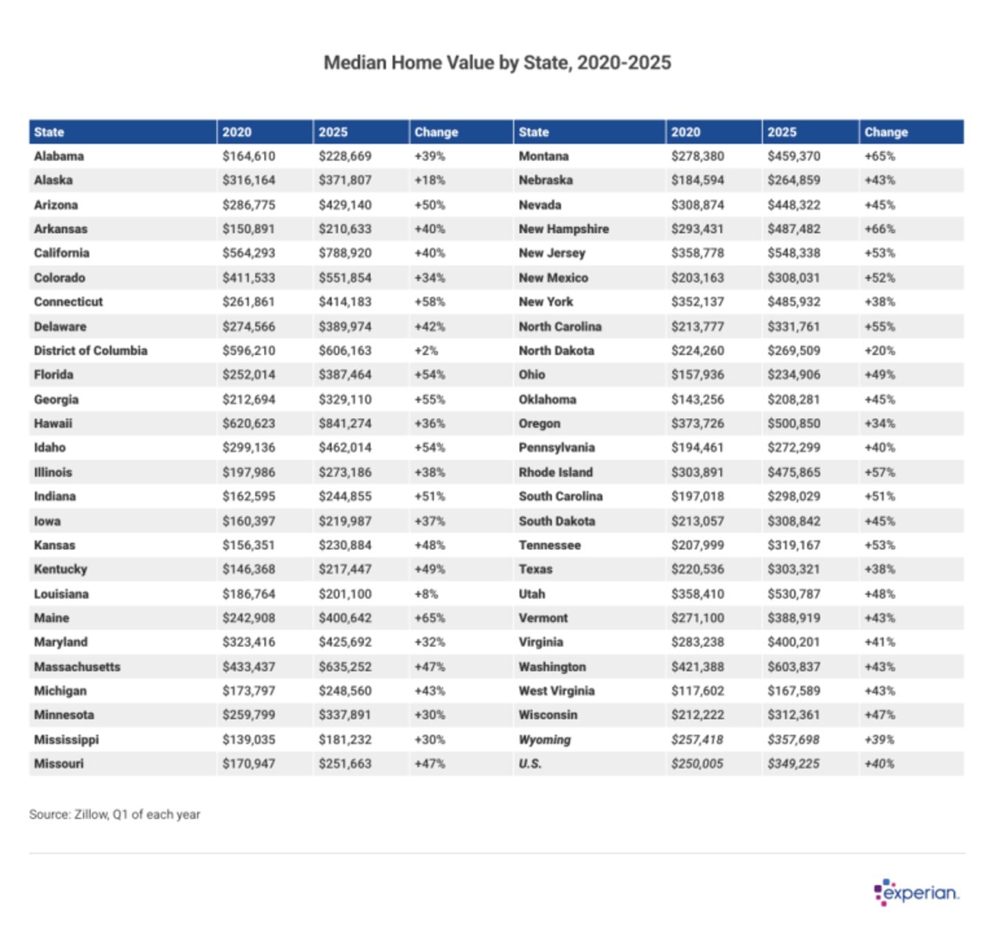 In general, while average mortgage balances in states have climbed by 24% since 2020, median home prices have grown even faster. Some states saw median home value increases that were nearly triple that over five years.