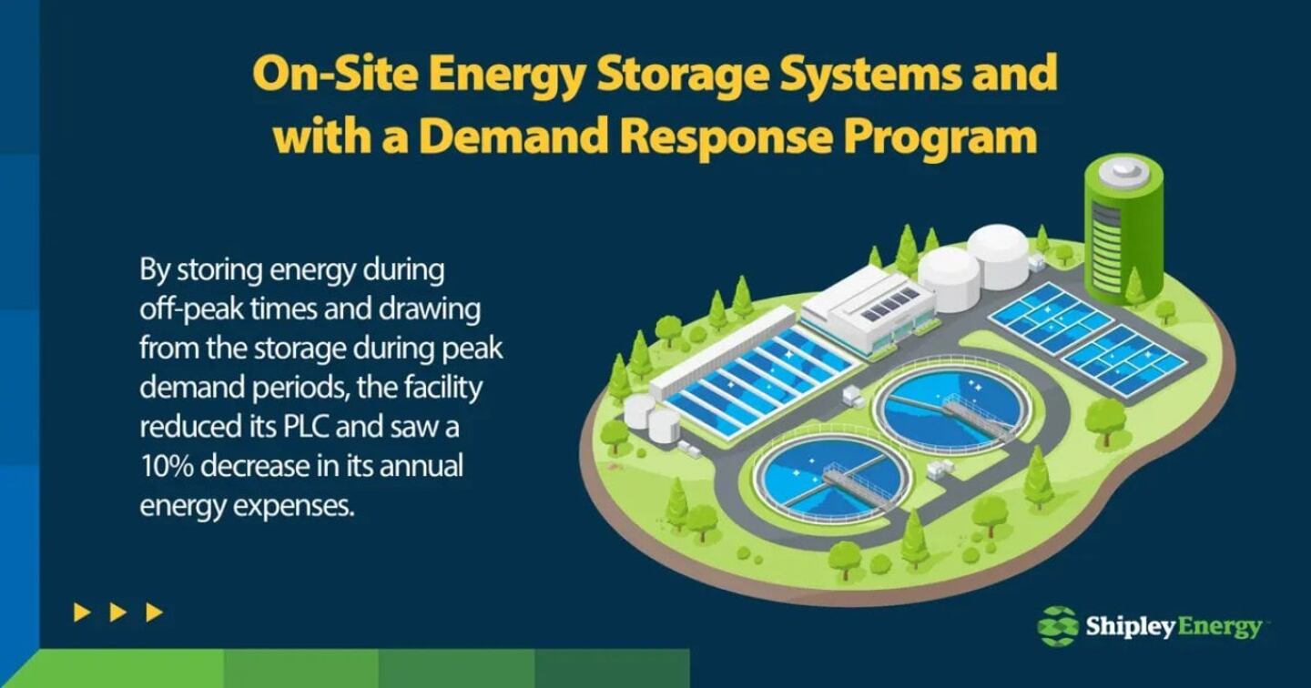 Example: A water treatment plant that integrates an on-site energy storage system and begins participating in a demand response program. By storing energy during off-peak times and drawing from the storage during peak demand periods, the facility could reduce its PLC and see a 10% decrease in its annual energy expenses.