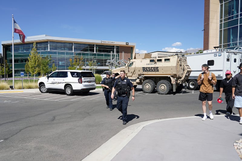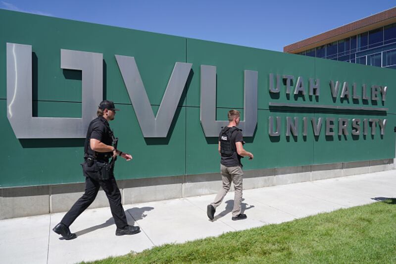 Update 4:19 p.m. ET, Sept. 10: Despite school officials saying earlier that the alleged shooter was in custody, posting it to X, Utah Valley University spokesperson Scott Trotter said in a statement, “The suspect is not in custody,” CNN and the Deseret News reported.