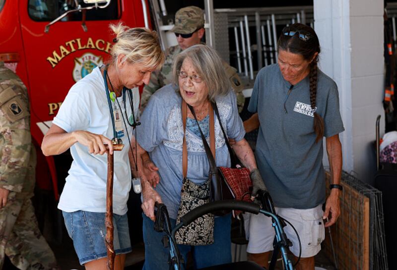 Photos: Rescues, evacuations continue in Florida after Hurricane Ian A Florida Army National Guard helicopter prepares to land as Madeline Thayer walks to an evacuation center on the island on October 2, 2022, in Pine Island, Florida. Residents are being encouraged to leave because the only road onto the island is impassable and electricity and water remain knocked out after Hurricane Ian passed through the area. (Joe Raedle/Getty Images)