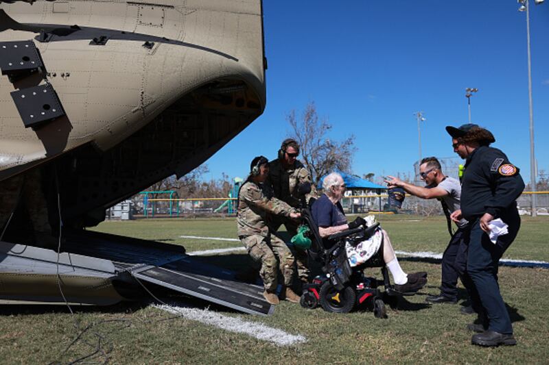 Photos: Rescues, evacuations continue in Florida after Hurricane Ian Francis Gersic is evacuated by a Florida Army National Guard chinook on October 2, 2022, in Pine Island, Florida. Residents are being encouraged to leave because the only road onto the island is impassable and electricity and water remain knocked out after Hurricane Ian passed through the area. (Joe Raedle/Getty Images)