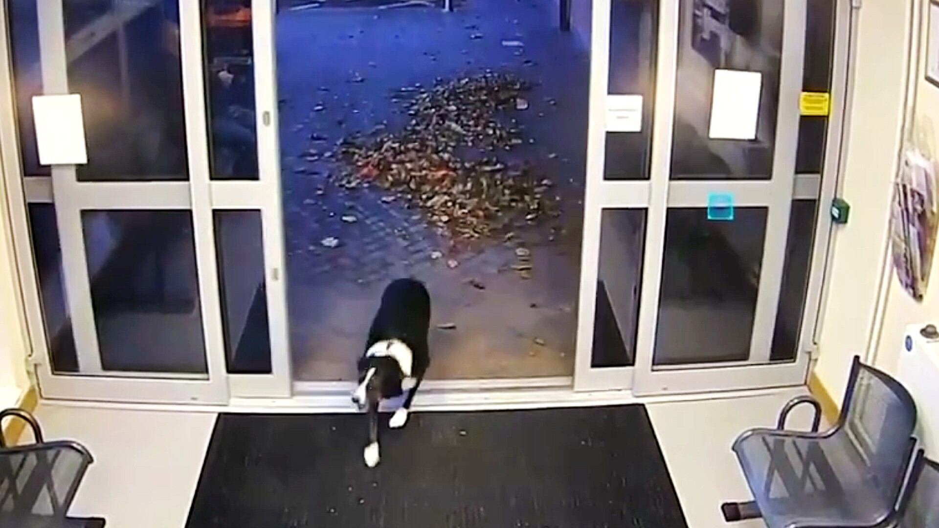 Leicestershire police officials wrote on Facebook that the dog had become lost when its owner was walking her and a second dog nearby. CCTV footage shows Rosie walk through the automatic doors into the Loughborough station and take a seat in a corner of the lobby.