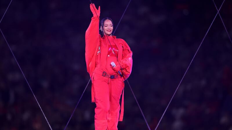 Super Bowl LVII halftime: Rihanna performs at State Farm Stadium during halftime of Super Bowl LVII. (Mike Coppola/Getty Images)