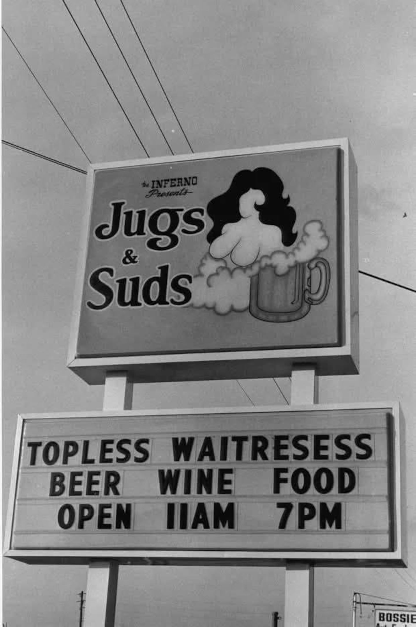 Just one week later, another Jugs ‘n’ Suds opened in an even larger location. This one did not have ”topless carhops," but it did have a platform where women could dance inside.